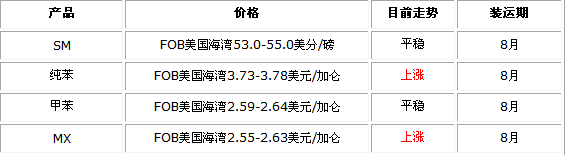 化工易贸网8月6日消息:据悉,中石油东北销售公司今日苯乙烯报价暂稳,其抚顺石化执行8700元/吨产销正常;锦州石化报价88...