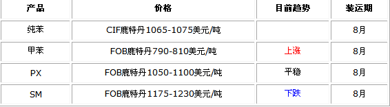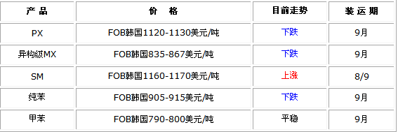 [SM] 原料苯乙烯昨日收盘价(09/8/5)